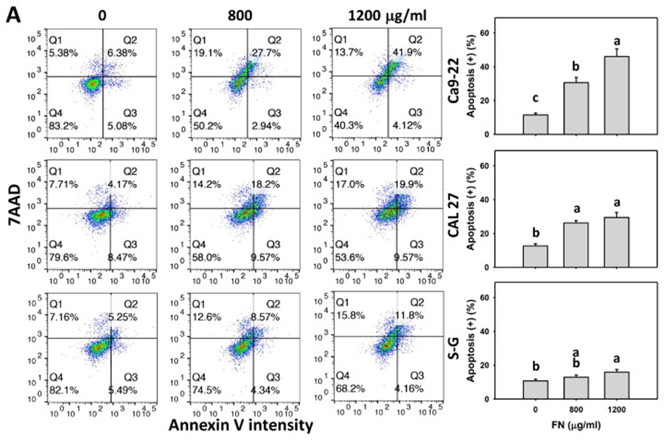 Figure. 2) Fucoidan drives apoptosis (Annexin V) in oral cancer cells.