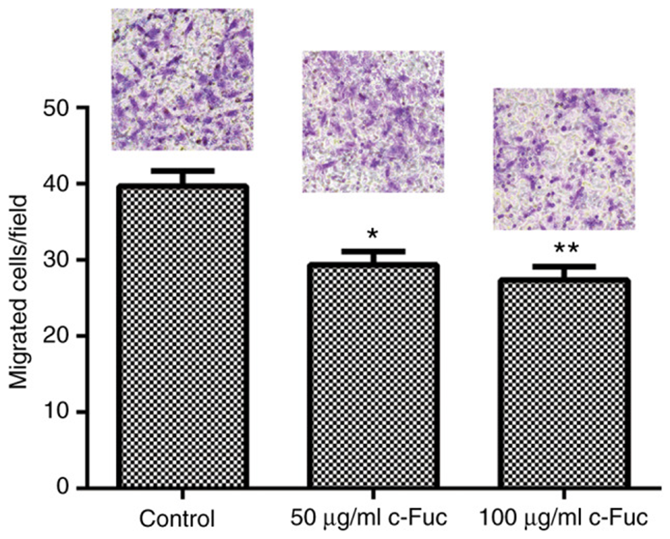 Figure. 2) Transwell assay. U2OS cells incubated with or without Cf-Fuc were placed in Transwell inserts.